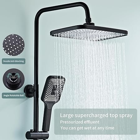 12 inches Rain Shower Head Large rain shower provides luxurious water flow. 320*200mm super large top spray, the outlet holes are evenly distributed, comfortable rainwater surrounds the whole body, the water drops are round and full, the graceful water curtain awakens the senses, the wide water curtain makes every inch of skin comfortable, and opens a new shower world