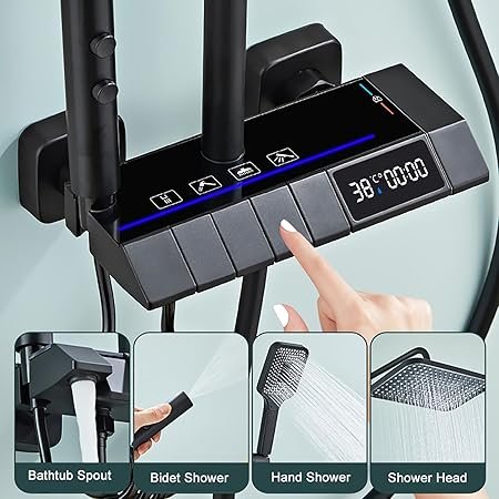 Be the first to review “Black Shower System with LED Digital Display Shower Faucet Set Wall Mount Rain Mixer Shower Combo Set 4 Way Shower Fixture with 12″ Rain Shower Head, 3 Mode Handheld Shower, Bidet Shower, Tub Spout”