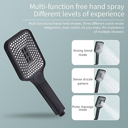 Multifunctional The 3 functions bathroom shower head will provide you best shower experience! Not only perfect for adults who need powerful water to relieve muscle pain, but also suitable for bathing young kids or washing pets in gentle water setting. In addition, the powerful jetting also can help you clean everywhere. The 59 inch shower hose, offer maximum flexibility and movement.Flexible and Comfortable The shower rod is made of stainless steel, which is heat and pressure resistant