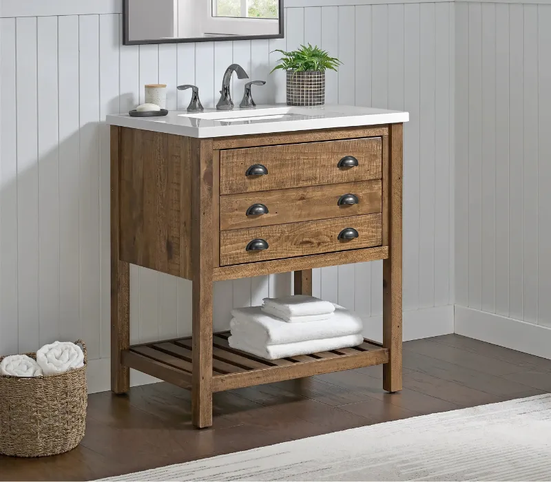 The integrated ceramic basin offers a seamless, easy-to-clean surface, while the two soft-close drawers provide ample storage for toiletries, keeping your bathroom neat and clutter-free. An additional open shelf allows quick access to frequently used items.