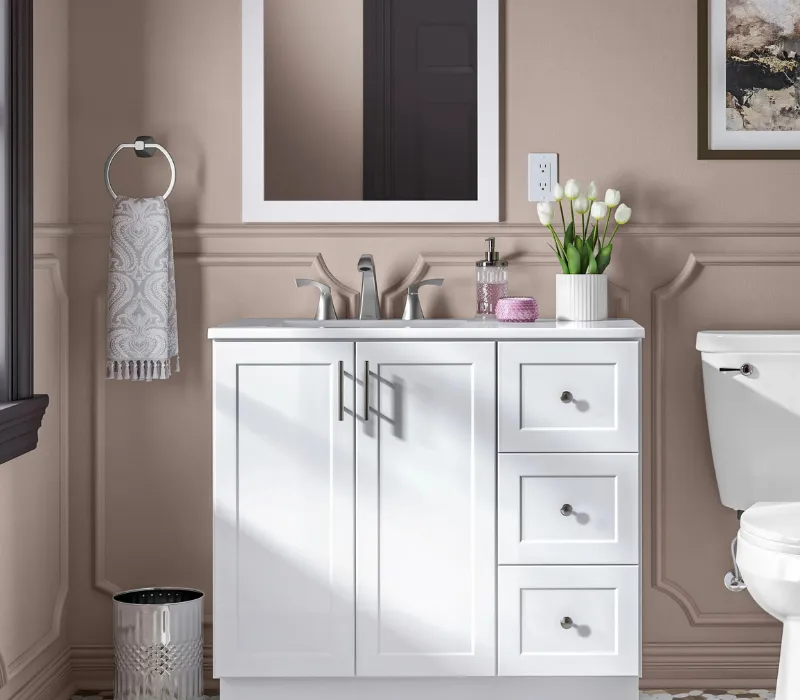 Perfect for contemporary bathrooms, this wall-mounted vanity creates a floating effect that visually expands your space and simplifies cleaning underneath. Durable chrome handles add a touch of sophistication, completing the modern look.