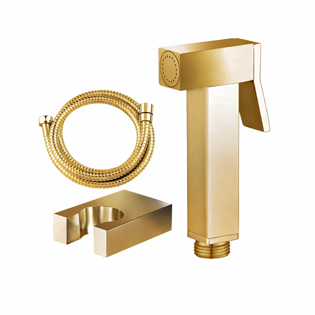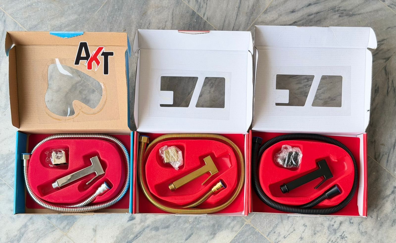 Premium handheld bidet spray set designed for convenient and hygienic cleaning. It comes with a flexible hose and a comfortable spray handle for smooth water control. The modern design and durable build make it a practical and stylish addition to any wash area. Available in Black, Silver, and Gold.