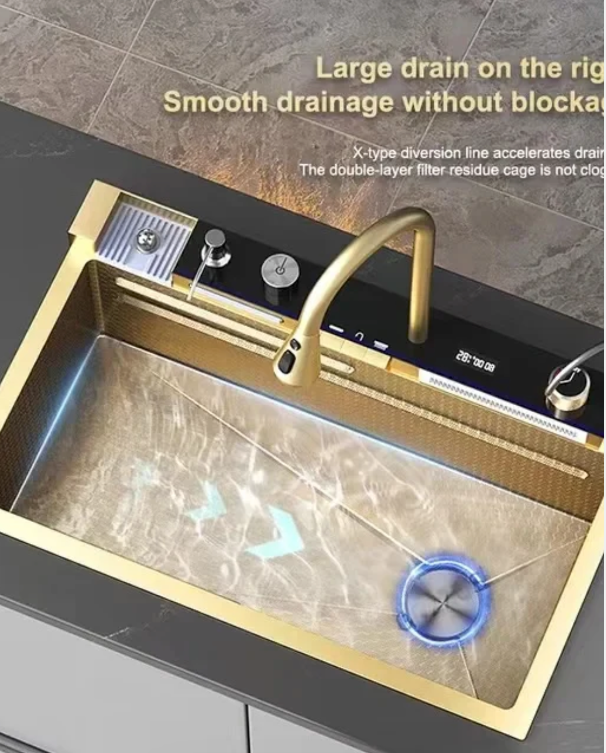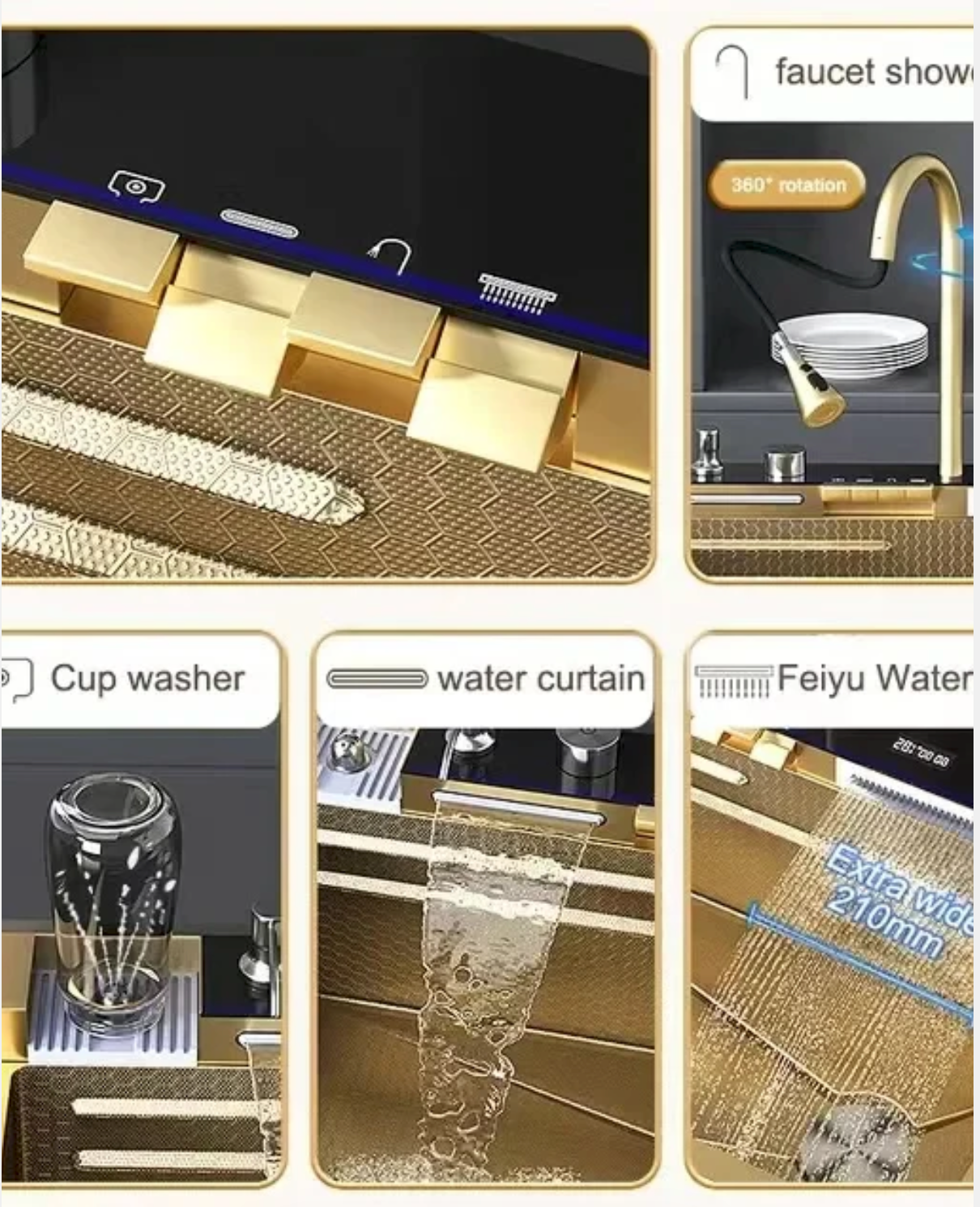 Be the first to review “Luxury Gold Multifunction Stainless Steel Kitchen Sink with Waterfall Faucet”