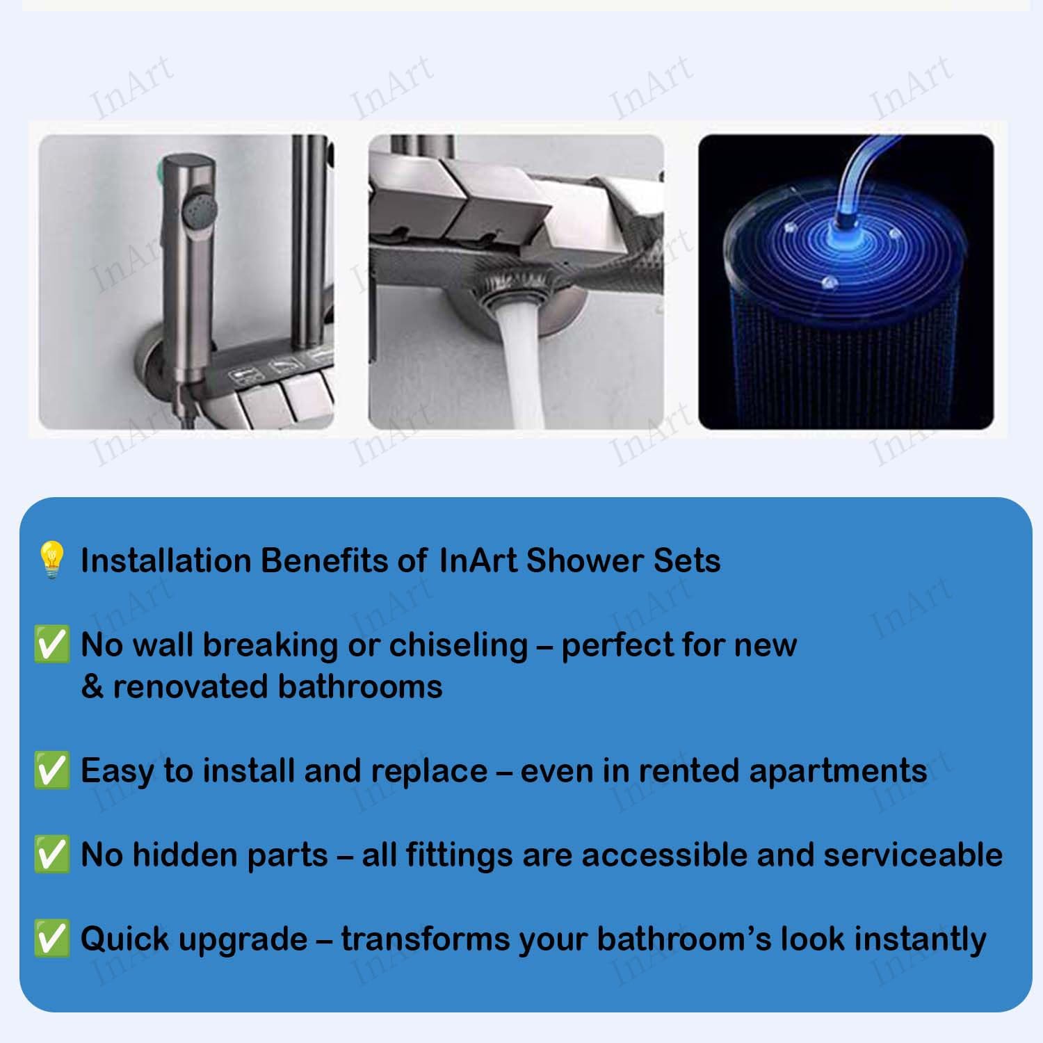 Easy Installation: Comes ready with all necessary accessories for a hassle-free setup, compatible with standard steel shower panel tower systems and cold main water systems.